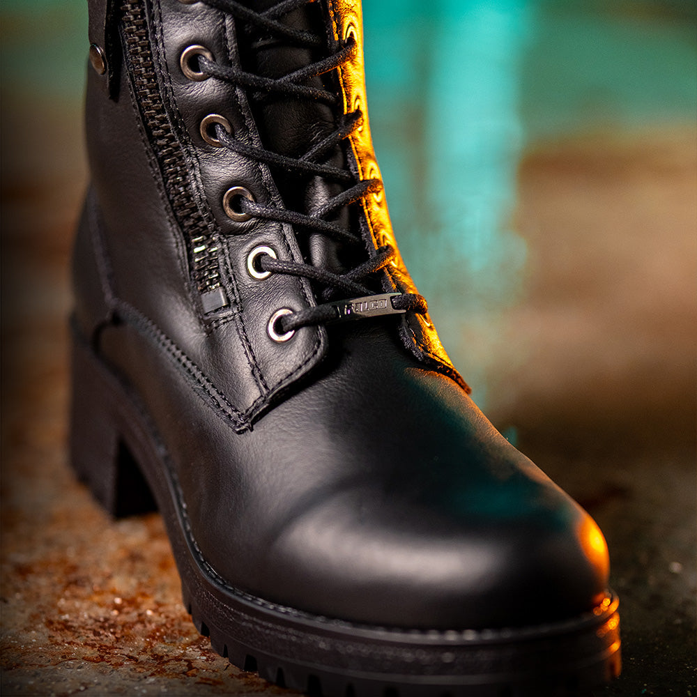 If you are looking for contemporary women's motorcycle boots that are both waterproof and breathable, these Misty 2 boots are a beautiful choice. Updated with new features and more style, Falco have built upon their previous Misty model with a re-designed lower profile toe box for increased comfort, and the addition of D30 armour in the ankle cups. The High-Tex® waterproof membrane and heel and toe reinforcements have been continued to help keep your feet dry and safe, while the convenient lace and zipper design and non-slip high heel sole provide the style and security no matter where you step. Designed by Falco specifically for Women, the Italian-made Misty 2 motorcycle boot will keep you riding in chic comfort.