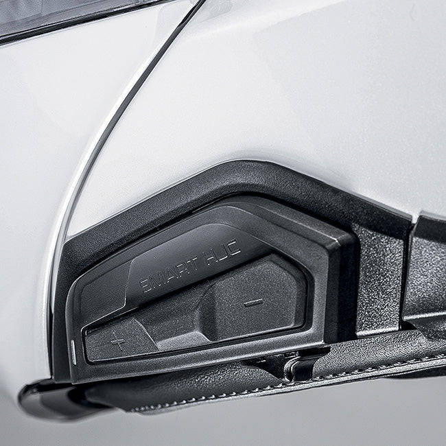 The SMART HJC 2nd generation premium Bluetooth communication system model implements an all-in-one design, that is fully integrated into the helmet, allowing you to feel the optimal weight balance and aerodynamic performance while riding.